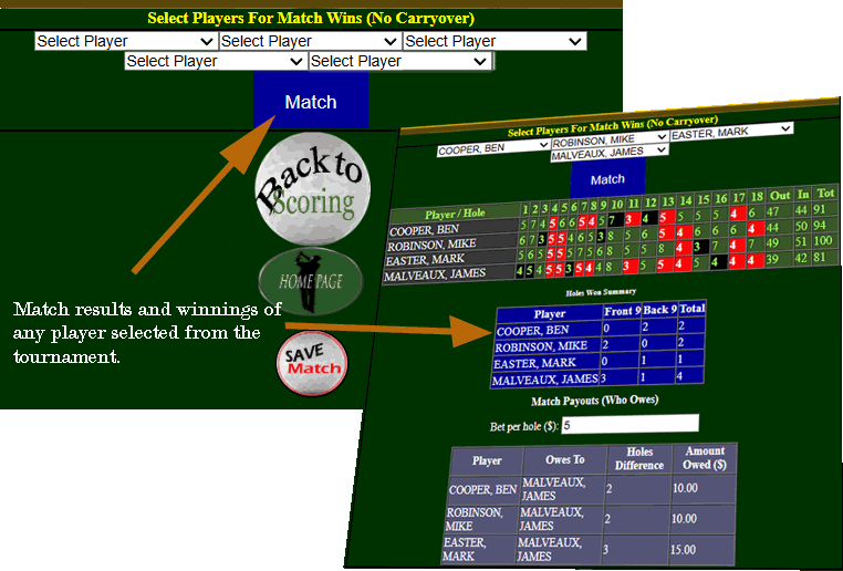 • 📊 Match Play with Winnings Calculator – Automatically calculate match results and payouts.
