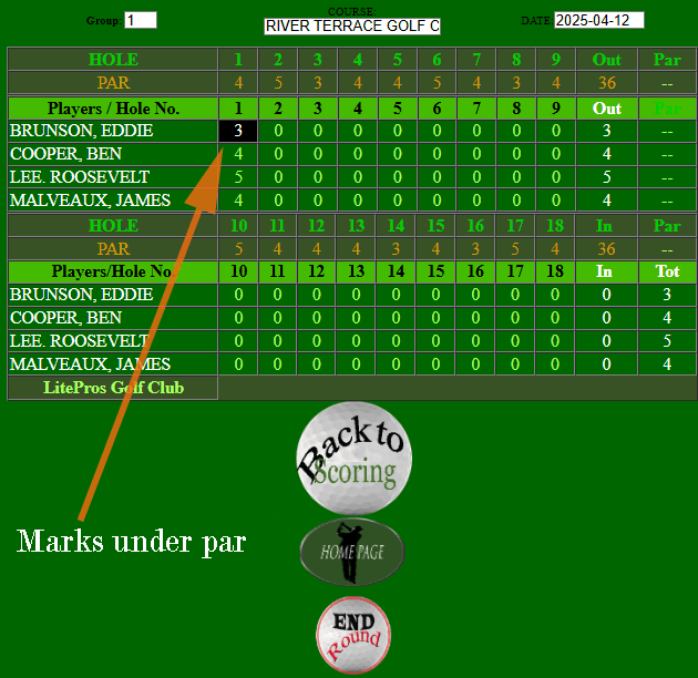 • 🔍 Live Group Scorecard Views – Monitor any group’s progress hole-by-hole.