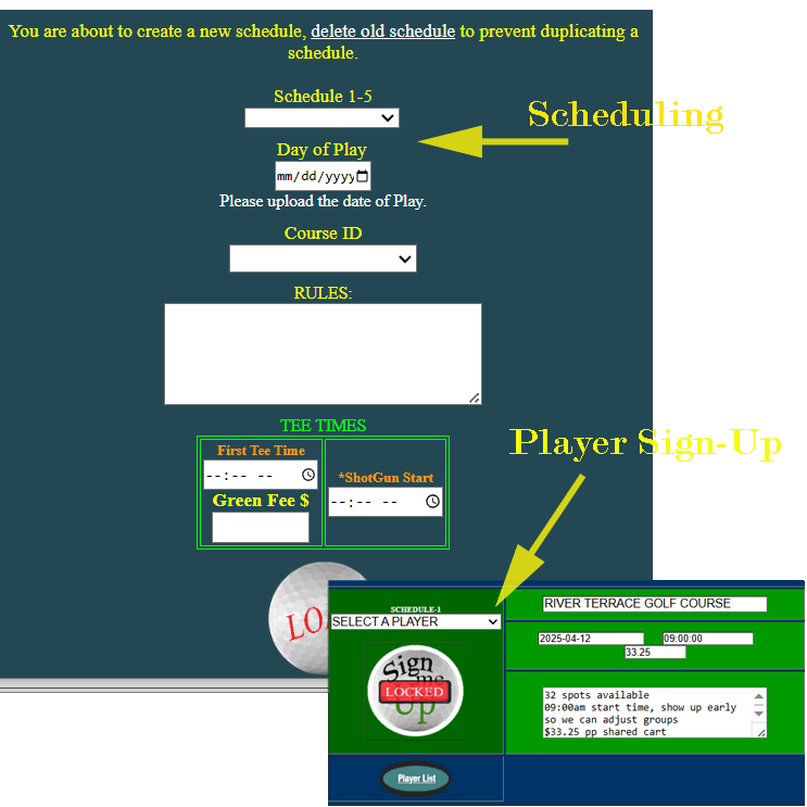 • Effortless Scheduling – Plan tee times and get everyone on the same page.
